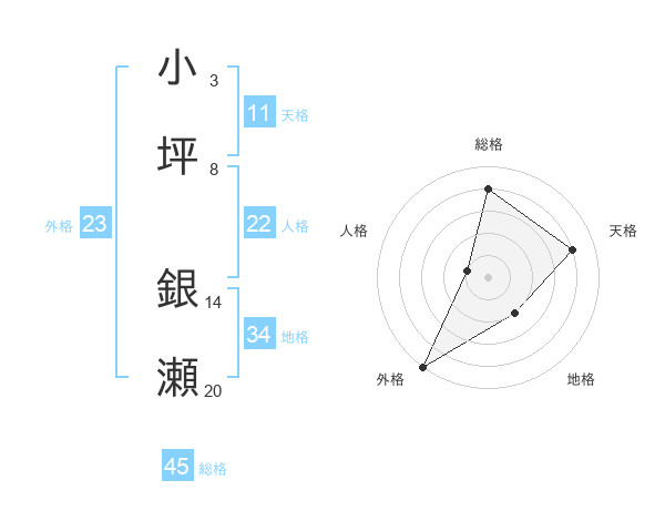 小坪 銀瀬さんを姓名の画数から五運を鑑定