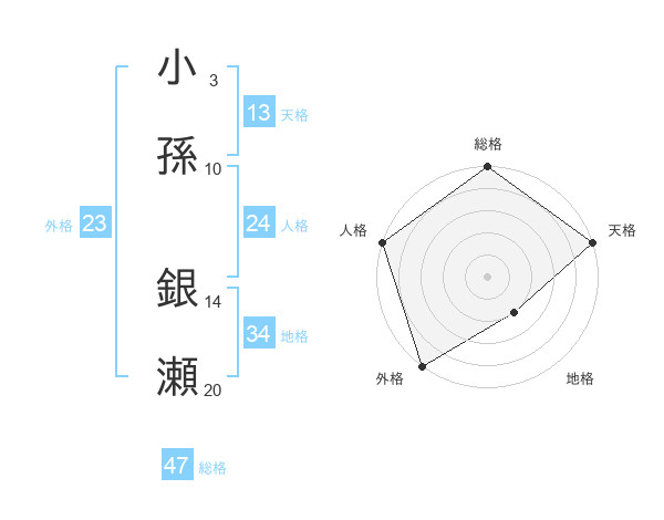 小孫 銀瀬さんを姓名の画数から五運を鑑定
