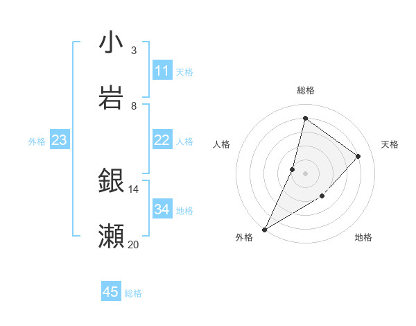 小岩 銀瀬さんを姓名の画数から五運を鑑定
