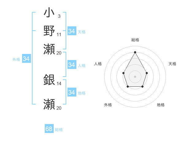 小野瀬 銀瀬さんを姓名の画数から五運を鑑定