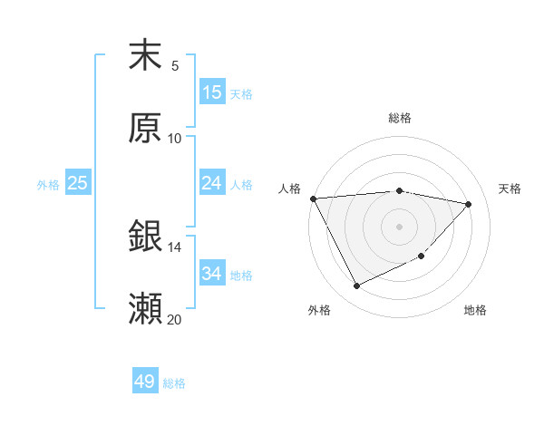 末原 銀瀬さんを姓名の画数から五運を鑑定