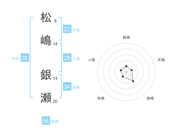 松嶋 銀瀬さんの総格は56画の1点!