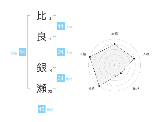 比良 銀瀬さんの総格は45画の4点!