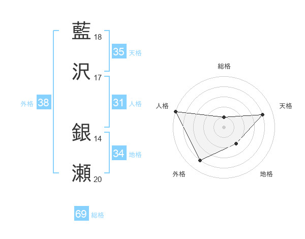 藍沢 銀瀬さんの総格は69画の1点!