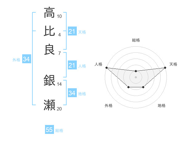 高比良 銀瀬さんを姓名の画数から五運を鑑定