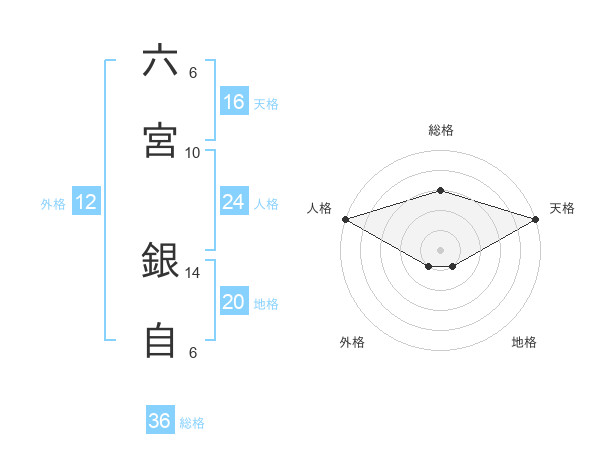 六宮 銀自さんの総格は36画の3点!