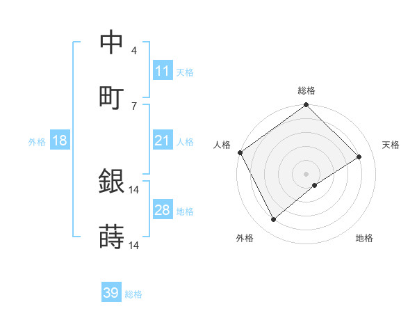 中町 銀蒔さんを姓名の画数から五運を鑑定