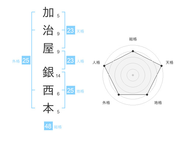 加治屋 銀西本さんを姓名の画数から五運を鑑定