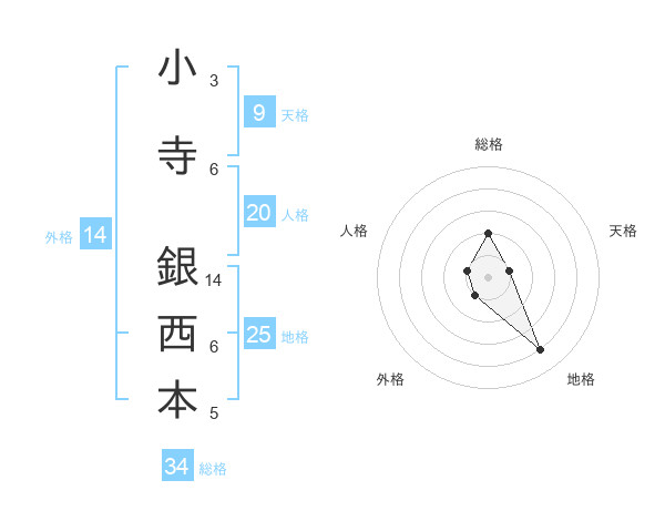 小寺 銀西本さんを姓名の画数から五運を鑑定