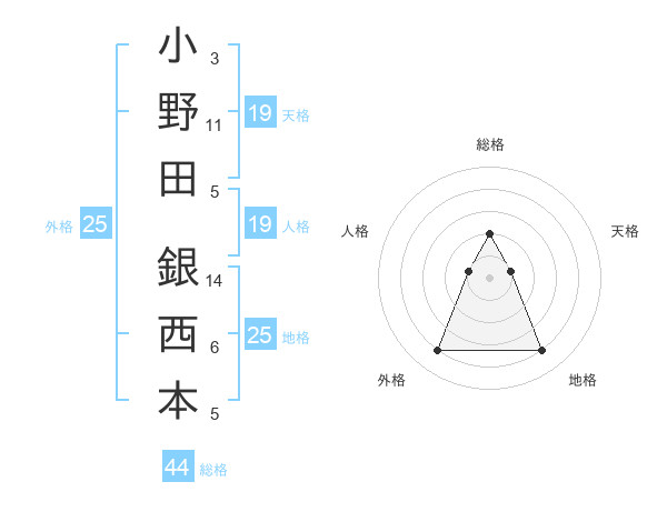 小野田 銀西本さんを姓名の画数から五運を鑑定