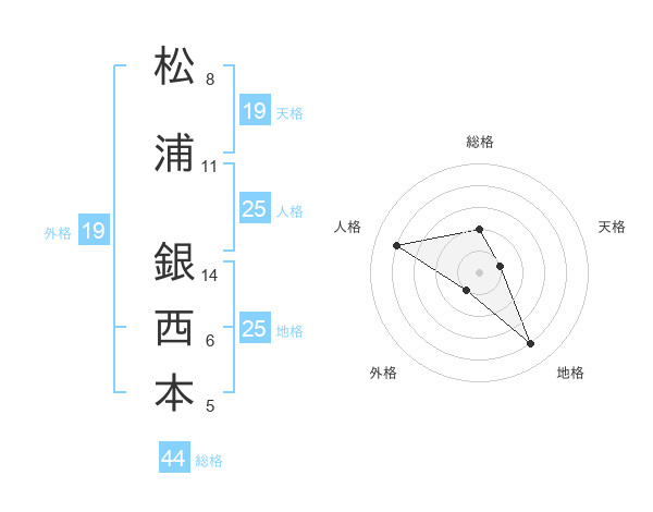 松浦 銀西本さんを姓名の画数から五運を鑑定