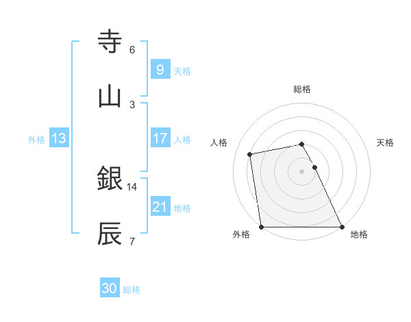 寺山 銀辰さんを姓名の画数から五運を鑑定