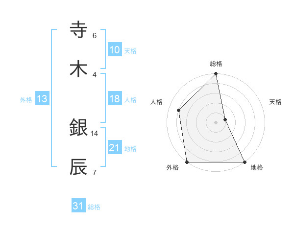 寺木 銀辰さんを姓名の画数から五運を鑑定