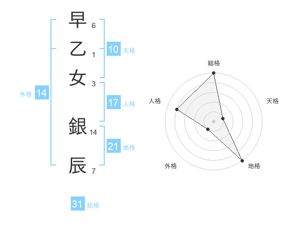 早乙女 銀辰さんの総格は31画の5点!