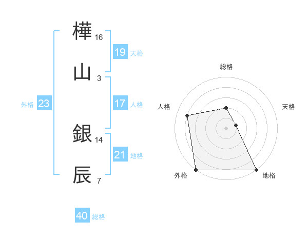 樺山 銀辰さんを姓名の画数から五運を鑑定
