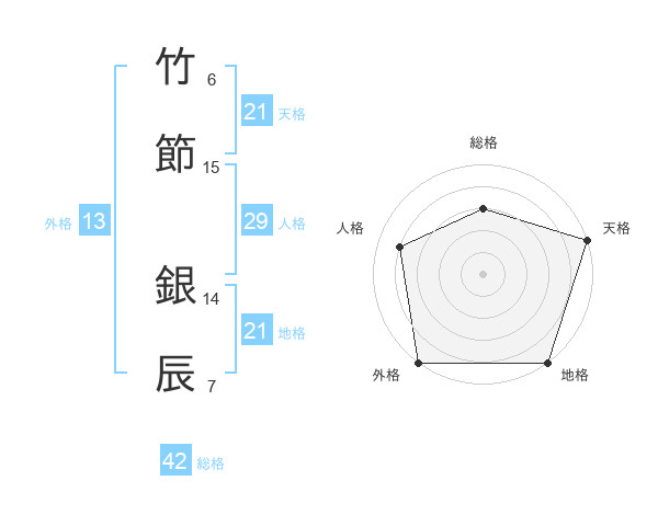 竹節 銀辰さんの総格は42画の3点!