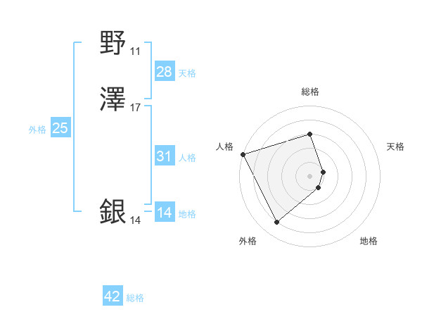 野澤 銀さんの人格は31画の5点!