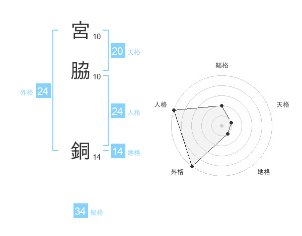 宮脇 銅さんの総格は34画の2点!