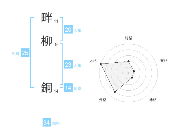 畔柳 銅さんを姓名の画数から五運を鑑定