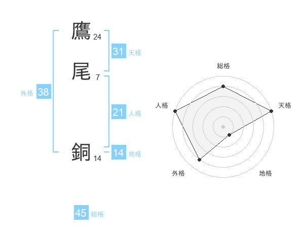 鷹尾 銅さんの天格は31画の5点!