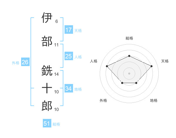 伊部 銑十郎さんの総格は51画の3点!