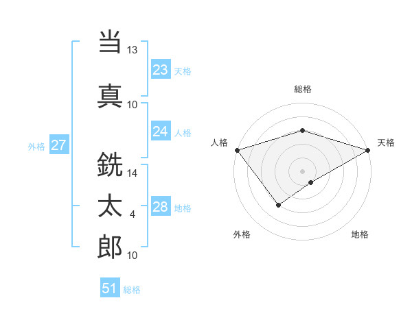 当真 銑太郎さんを姓名の画数から五運を鑑定