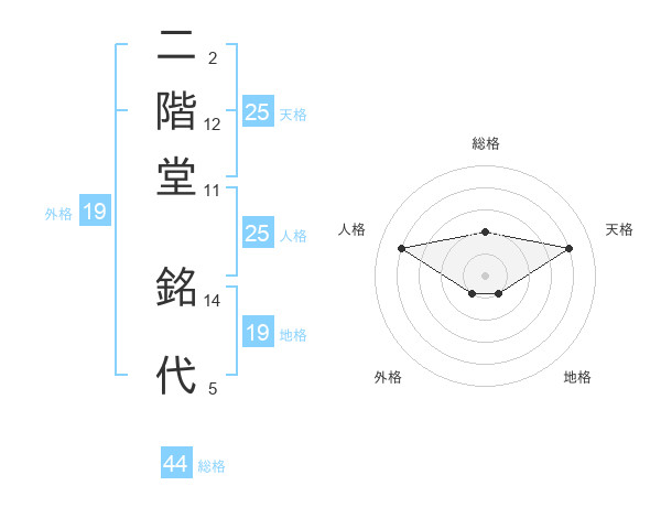 二階堂 銘代さんの天格は25画の4点!