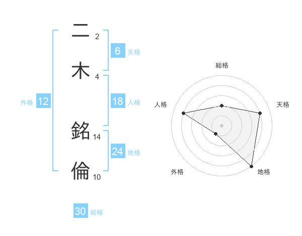 二木 銘倫さんの天格は6画の4点!