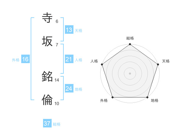 寺坂 銘倫さんを姓名の画数から五運を鑑定