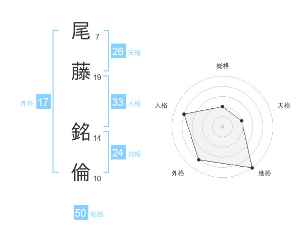 尾藤 銘倫さんを姓名の画数から五運を鑑定