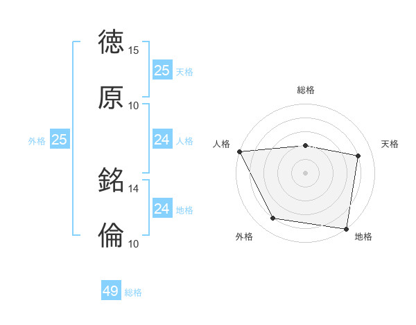徳原 銘倫さんの外格は25画の4点!