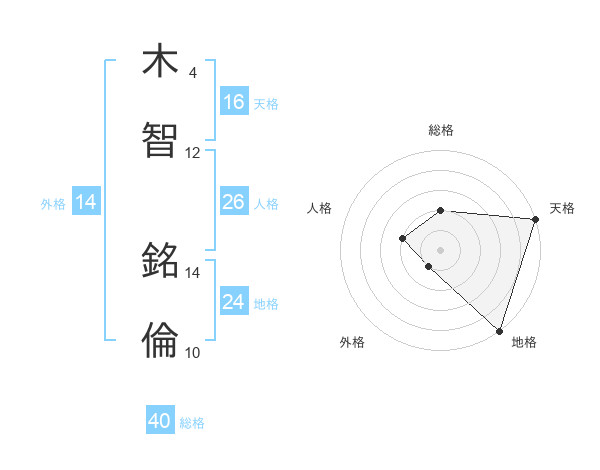 木智 銘倫さんの天格は16画の5点!