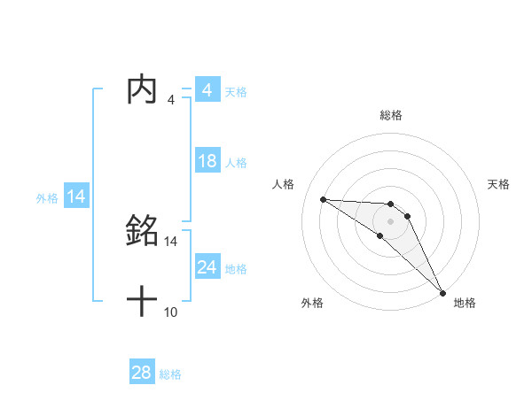 内 銘十さんの外格は14画の1点!