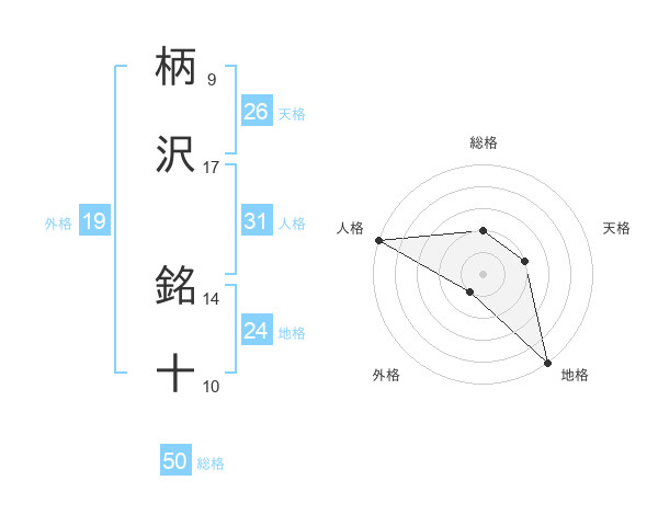 柄沢 銘十さんの総格は50画の2点!