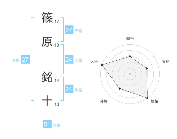 篠原 銘十さんを姓名の画数から五運を鑑定