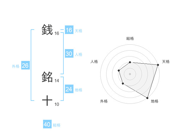 銭 銘十さんの天格は16画の5点!
