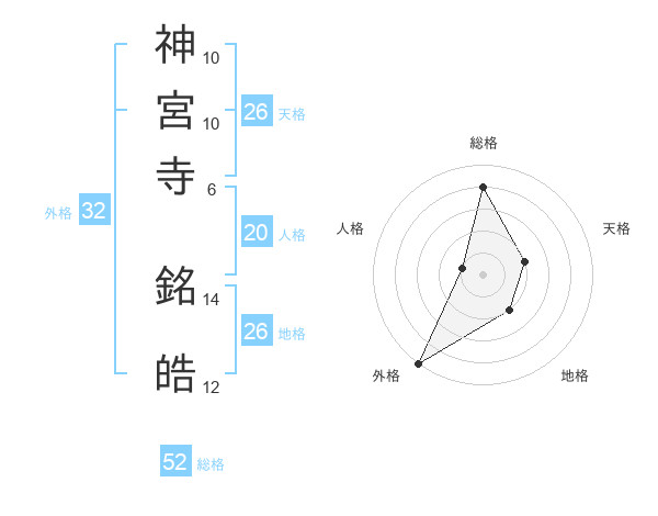 神宮寺 銘皓さんを姓名の画数から五運を鑑定