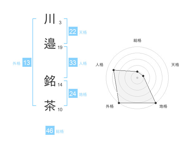川邉 銘茶さんの総格は46画の1点!