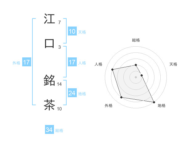 江口 銘茶さんを姓名の画数から五運を鑑定