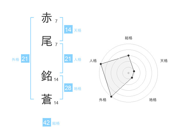 赤尾 銘蒼さんを姓名の画数から五運を鑑定