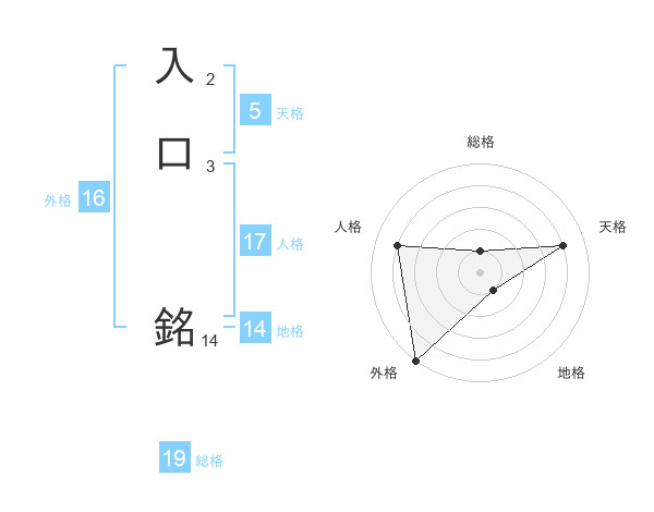 入口 銘さんの外格は16画の5点!
