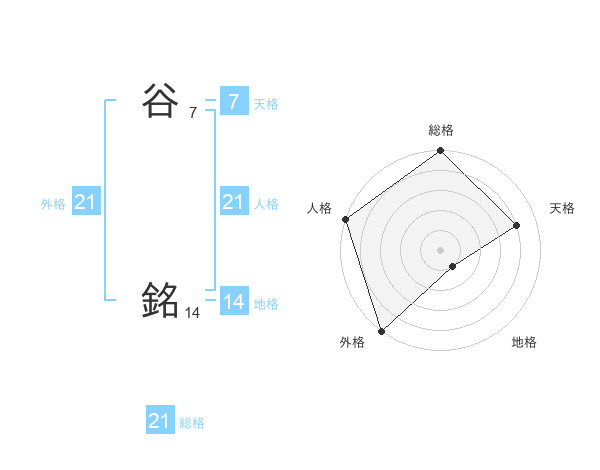 谷 銘さんの外格は21画の5点!