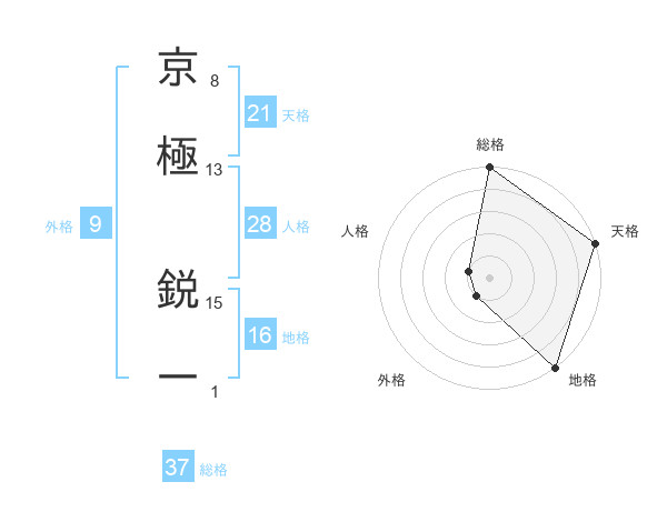 京極 鋭一さんを姓名の画数から五運を鑑定