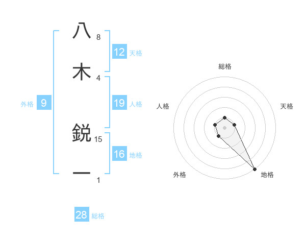 八木 鋭一さんを姓名の画数から五運を鑑定