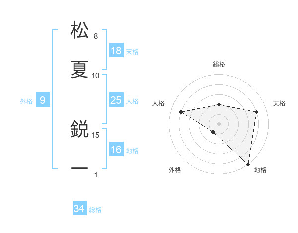 松夏 鋭一さんを姓名の画数から五運を鑑定