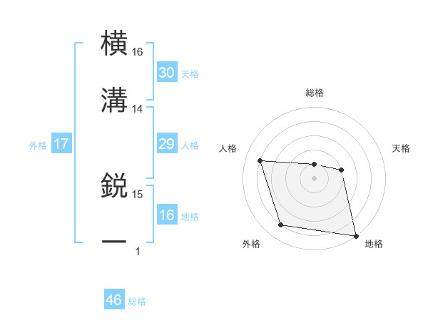 横溝 鋭一さんを姓名の画数から五運を鑑定
