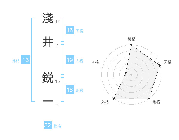 淺井 鋭一さんの外格は13画の5点!