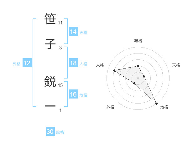 笹子 鋭一さんの総格は30画の2点!