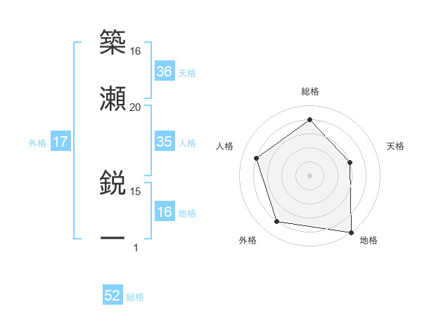 築瀬 鋭一さんの総格は52画の4点!