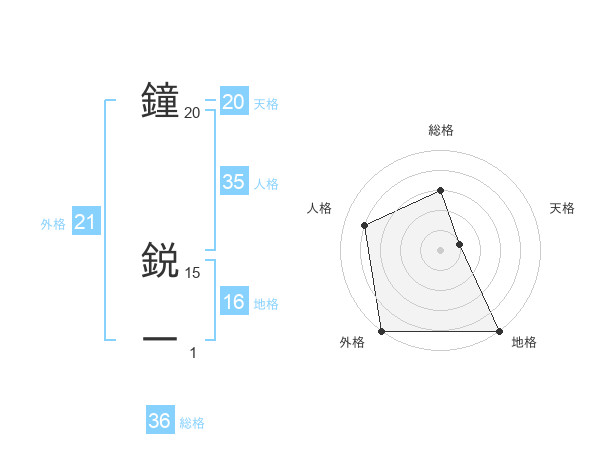鐘 鋭一さんの外格は21画の5点!